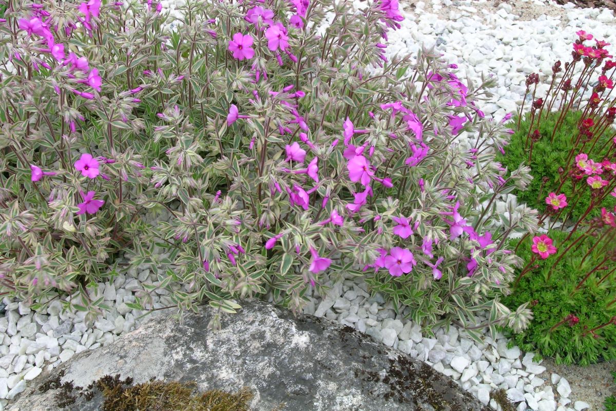 Sellel floksil on kaunid pilgupüüdjad nii õied kui ka lehed. Lõhnavad roosakaslillad õied. Lehestik on kreemikas-valge kirju. Sügisel külmade saabudes muudab lehestik kaunilt värvi, muutub intensiivselt roosaks. Aeglaselt leviv igihaljas madal padjandtaim. Kõrgus 10-15 cm. Kuna on igihaljas, kardab varakevadist päikesepõletust, istuta taim varju. Hea kasvukoht on keskpäevase päikese eest kaitstud või isegi üsna varjuline, parasniiske või niiske, kuid hea drenaažiga. Sobib eelkõige kiviktaimlasse, madala äärisena, kiviklibustes aedades, ka kivimüüride peal. Sünonüüm phlox amoena.
